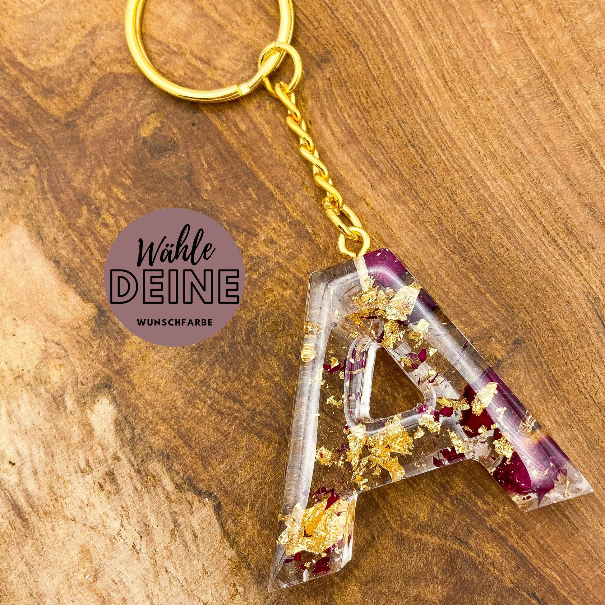 Schlüsselanhänger Buchstaben mit Rosenblättern