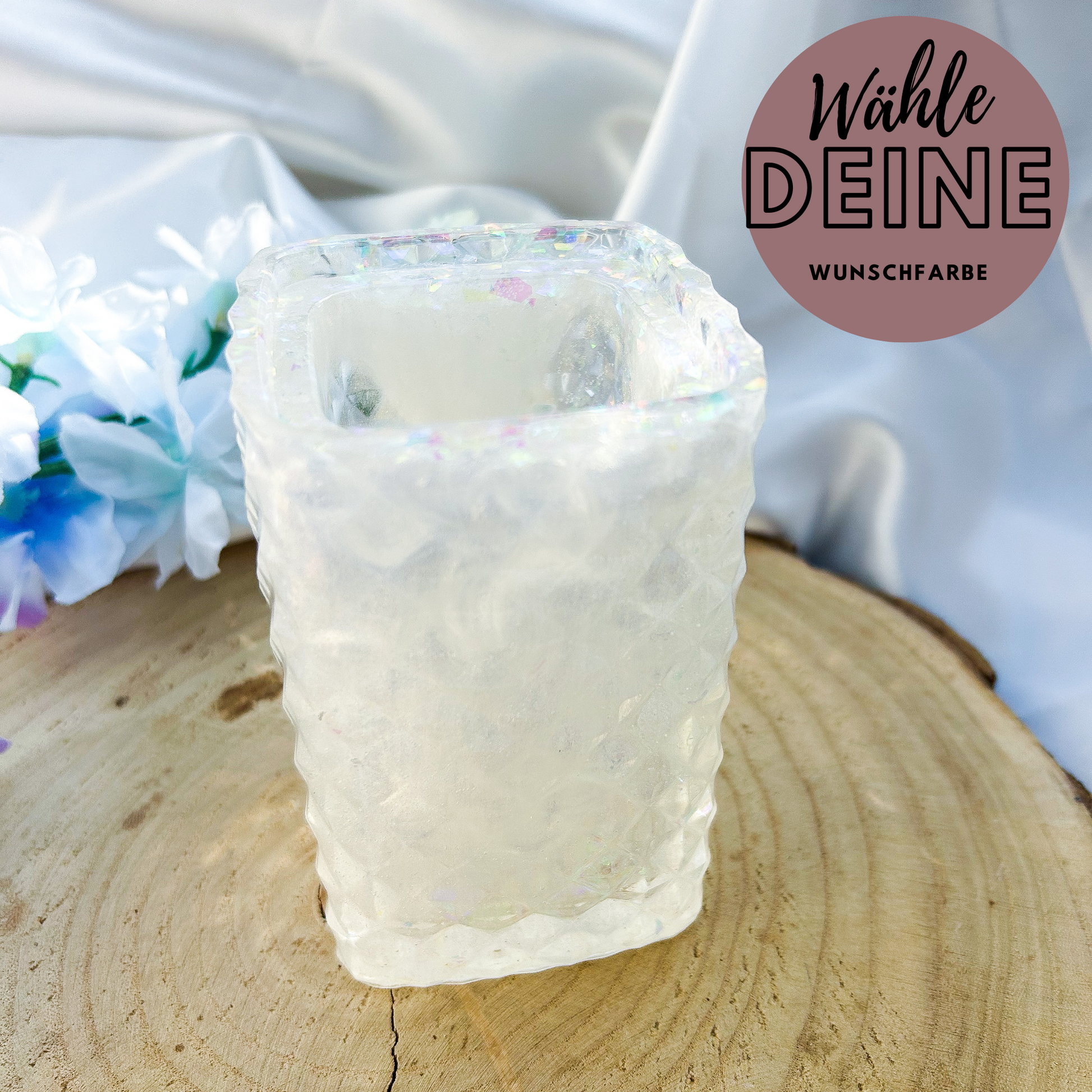 - Bei starker Hitze kann das Harz wieder biegsam werden. Bitte stelle keine heißen Getränke auf den Unikaten ab. Bei Teelichthaltern rate ich zu elektrischen Teelichtern. Außerdem dürfen die Unikate nicht in die Mikrowelle oder in den Backofen.